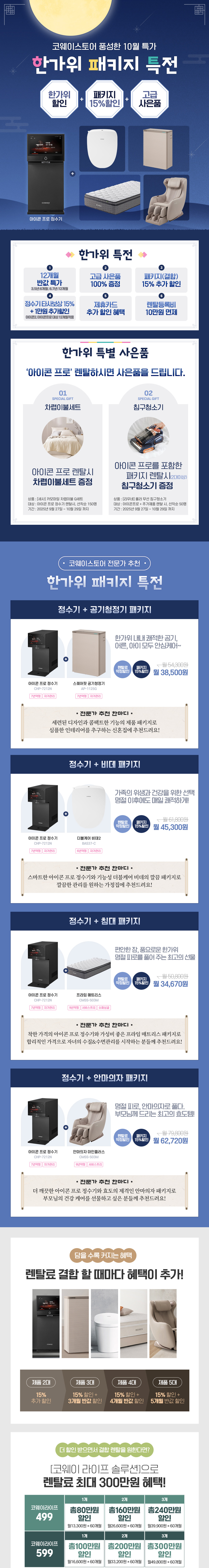 - 1. 2대 이상 구매 시 특약은 정수기, 비데, 청정기 등 회사가 정하는 모델을 대상으로 렌탈 또는 매매를 혼합하여 2대 이상 구성 시 적용됩니다.